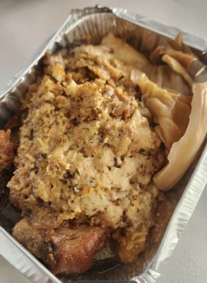 1 Chicken drum, Choice of Vegetable, Scoop of Stuffing, Mushroom Sauce